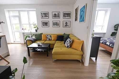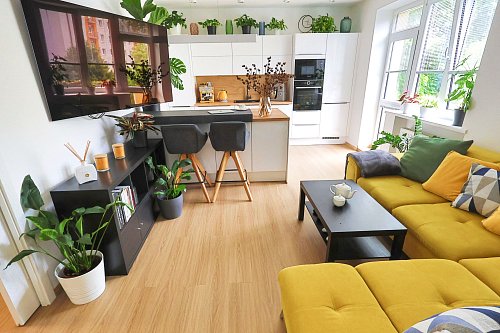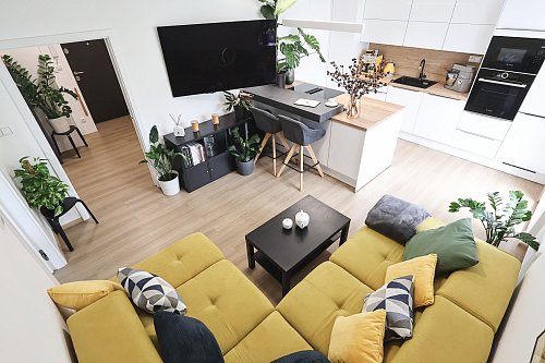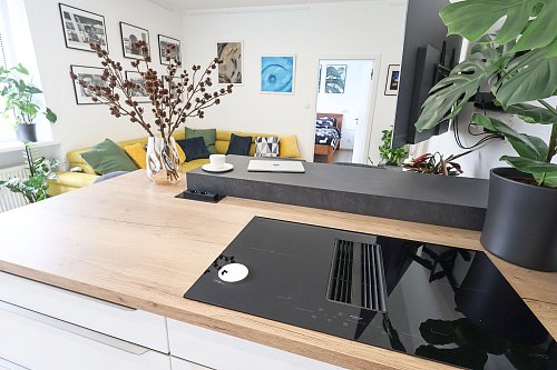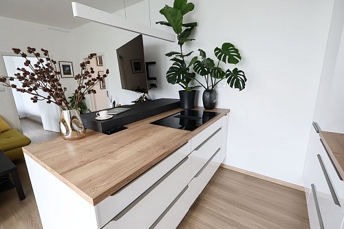 Tento moderní byt, který prošel celkovou rekonstrukcí pro náročné klienty v roce 2023, nabízí vše nové a kvalitní, přičemž byly použity moderní materiály. Byt je vybaven chytrou domácností, která umožňuje propojení televize a mobilu s pračkou, sušičkou a vybranými světly přes Hue Bridge.