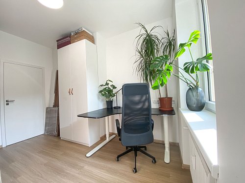V pracovně 10m2 se nachází psací stůl, elektricky výškově polohovací. Může sloužit jako druhý pokoj