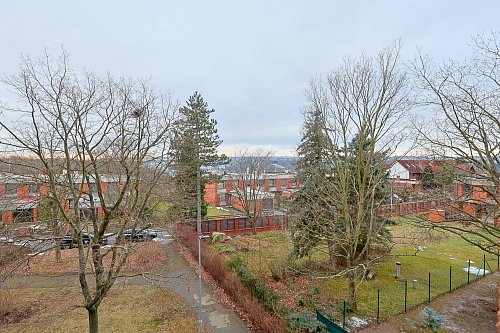 Byt se nachází v klidné ulici s výhledem do parku, přičemž je jen pár metrů od stanic autobusu, směr metro Kobylisy.